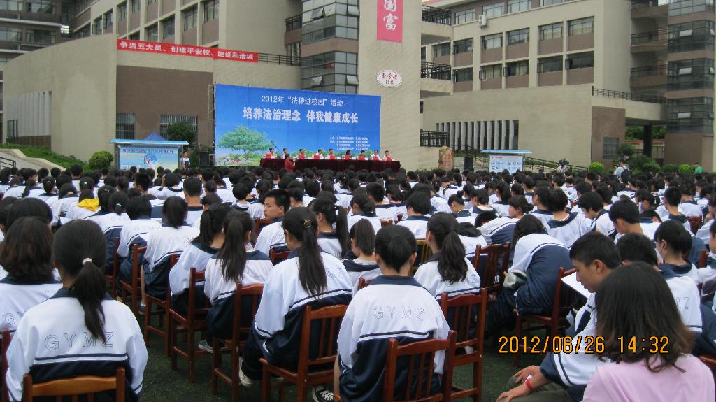 6月26号下午,为了加强我省青少年法制教育和全面贯彻落实“六五”普法规划以及我省“法律六进”的部署和要求,由贵州省依法治省办、省司法厅共同在贵阳市民族中学举行“法律进校园”活动。此次活动的主题为:“培养法治理念,伴我健康成长”。