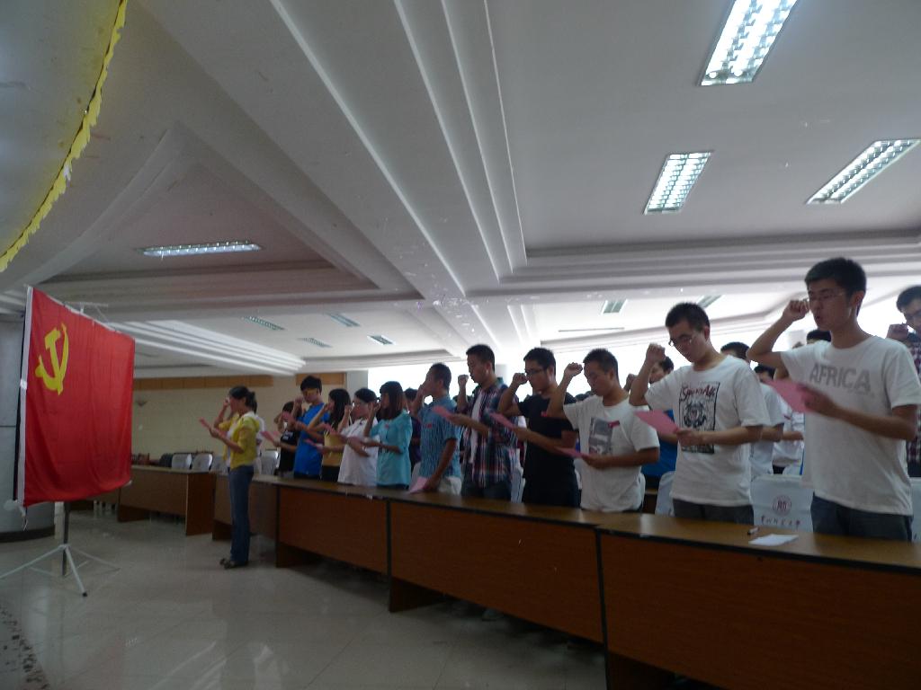 会上,李婧带领全体党员面对鲜艳的党旗,重温入党誓词,进行庄严的宣誓仪式。通过宣誓,进一步增强党员的责任感、光荣感和使命感,让每个学生党员时刻牢记党员身份,强化党员意识,自觉履行党员义务,践行入党誓词,在学习、工作中发挥模范带头作用,以实际行动为党旗增光添彩。