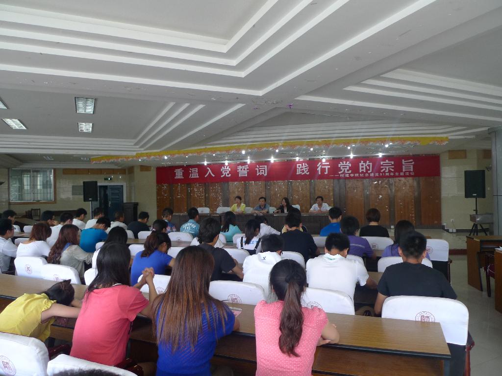 为隆重纪念建党91周年,深刻认识党的奋斗历程、优良传统和宝贵经验,进一步增强党组织的凝聚力和战斗力,坚定学生党员爱党、信党、跟党走的理想信念,6月28日,材料与建筑工程学院在白云校区综合楼211会议室举行“重温入党誓词践行党的宗旨”主题活动。学院党总支书记陈辉林、副书记郑环、组织员粟灿辉、党总支秘书李婧,以及学院在校学生党员共计50余人参加了此次活动。会议由粟灿辉主持。