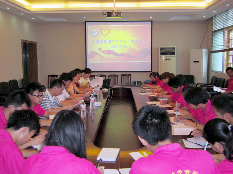 动员大会结束后,潘瑜、向凯麟结合服务地基本情况和队员特点,分别对同学们进行了安全知识、心理知识、三下乡基本常识等相关内容的培训。通过培训,每位队员对整个活动流程和安排有了明确的认识,再次加强了同学们的服务意识、责任意识和安全意识。大家都感到热情高涨,信心倍增,纷纷表示已做好充分的准备,期待着三下乡冲锋号的响起。