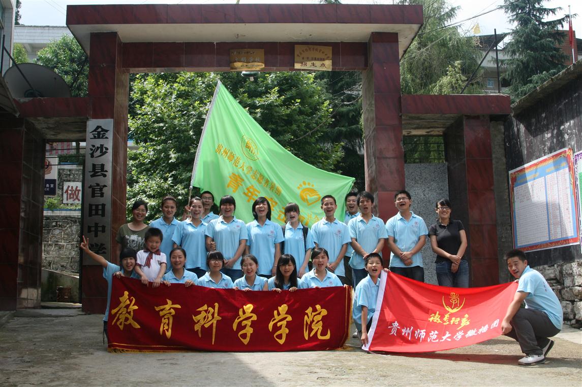 7月14日至7月21日,教育科学学院17名青年志愿者在学院两名老师的带领下,奔赴金沙县官田乡开展了贵州师范大学教育科学学院2012年暑期社会实践活动。在校团委统一部署,院党委的关怀指导,院团委的细致安排和志愿者的真情付出下,教育科学学院教育帮扶青年突击队圆满完成了此次暑期社会实践活动。此次社会实践也得到了金沙县官田乡政府、官田中学的大力支持,得到了当地村民的一致好评,取得了良好的社会反响。