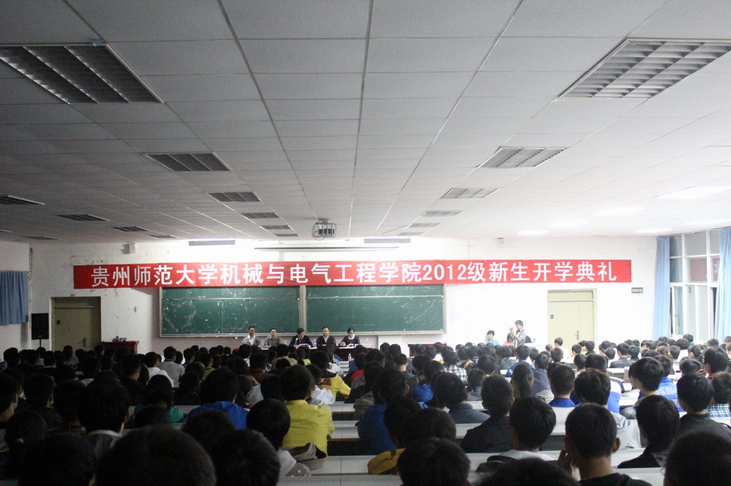 9月16日晚,机械与电气工程学院2012级新生开学典礼在白云校区求是学院文科楼501教室举行。学院党委书记陈椽,院长胡圣波,副书记黄平惠,副院长郑继明、张太华,学校科技园副主任苏明,各系主任、辅导员老师出席开学典礼。学院2012级490名全体新生参加。开学典礼由黄平惠主持。
