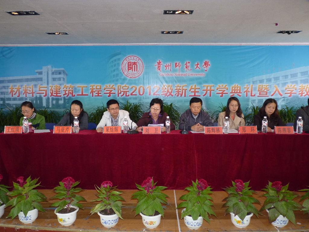 9月17日上午,材料与建筑工程学院2012级新生开学典礼暨新生入学教育在白云校区学生活动中心隆重举行。学院党总支书记陈辉林,院长刘卫,副书记郑环,副院长陈燕菲、陈昌礼,组织员粟灿辉,各学科主任、2012级本科生导师以及2012级各班辅导员、班主任出席开学典礼暨入学教育大会,学院2012级475名全体新生参加。大会由郑环主持。