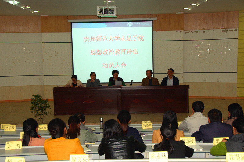 9月22日,求是学院组织全院教职工召开思想政治教育评估动员大会,对思政评估作工作部署。求是学院院长张静,党委副书记万平,副院长杨先明、杨晓英、李绿山出席会议。张静作动员报告。