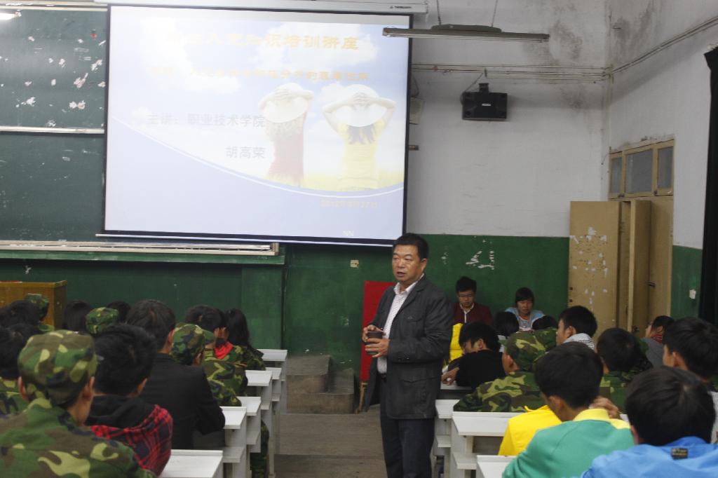 为增强新生对党的认识和理解,提高他们的思想政治觉悟和理论修养,进一步加强学院学生入党积极分子队伍建设,切实做好“早选苗、早教育、早培养、早发展”工作,保证学生党员队伍质量,9月27日和28日晚,职业技术学院党总支在白云校区二教212教室开展了“2012级新生入党知识培训讲座”。讲座由学院党总支书记胡高荣、副书记印明富主讲。学院团委柳青,辅导员胡媛、潘宏君等老师及2012级新生参加。讲座由党总支秘书李华主持。