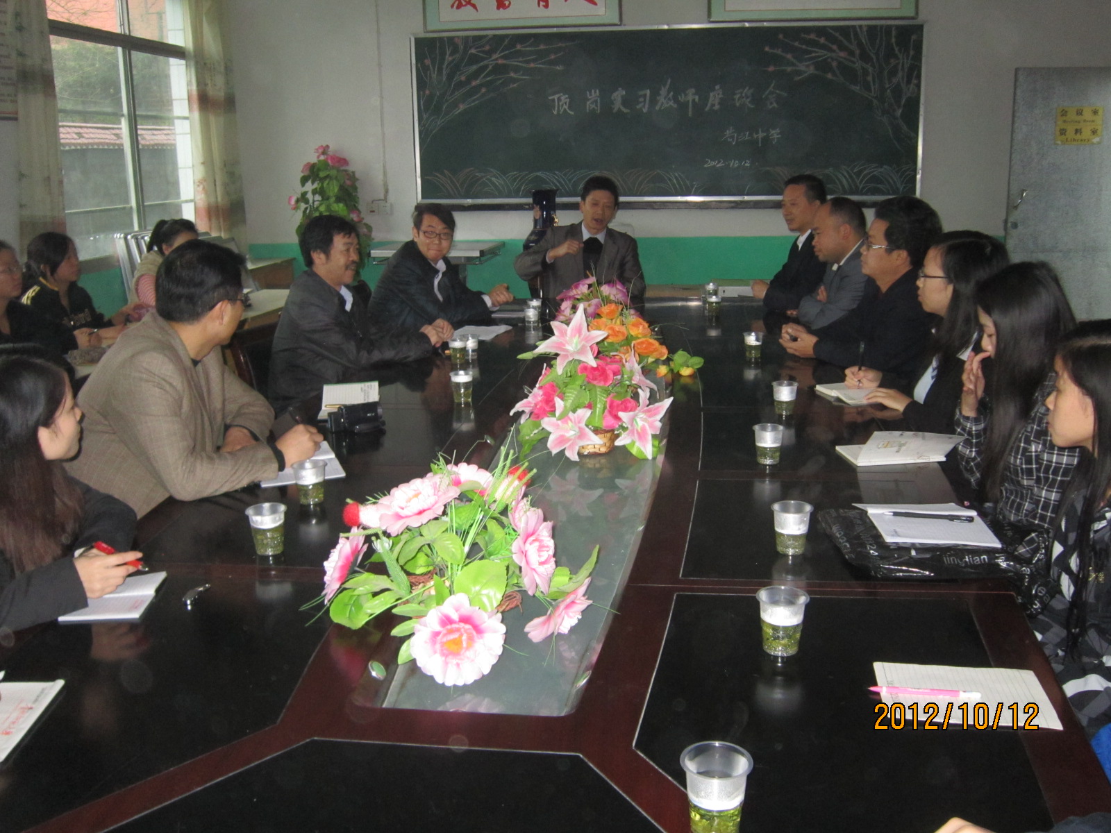 下午5:00,按照当地教育局安排,我们结束了一天紧凑而充实的看望学生行程,虽然各小组的同志已经满是疲惫,但大家讨论起定岗实习学生的表现却显得精神百倍,通过一天的走访和座谈,我们得出了这样的结论:国培顶岗为我们的学生搭建了有效的实践平台,经过一段时间的历练,他们快速地成长进步了。比如,在与学生的座谈过程中,我们发现反映生活方面困难和问题的很少,表达自己学习愿意和进步感受的却很多,同学们普遍表示,当地学校在生活上给与了他们很好的照顾,更重要的是为他们指派了教学经验丰富导师,指导他们如何根据学生的需求和实际开展教学工作,特别是在三岔中学,当地老师与我们的定岗实习学生已经成为了良师益友,我们的定岗实习学生也得到了无私的帮助和指导。而最让我们感动的是一位在苟江中定岗实习的生物专业同学在座谈时表示,以前他对教书没有什么兴趣,通过这段时间的定岗,向当地教师学习,他对教书产生了兴趣,找到了当老师的感觉,越来越爱上教师这一行业了。