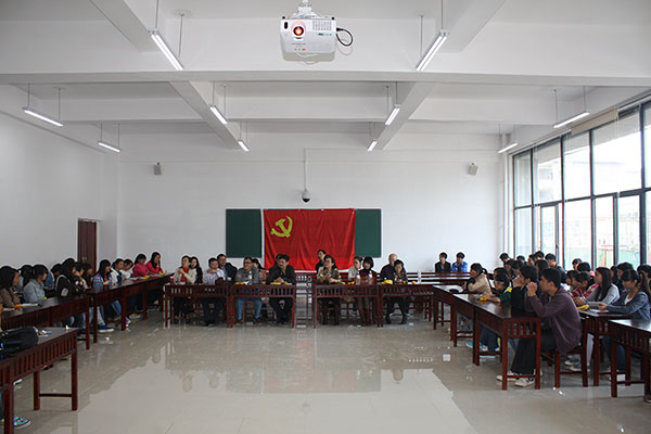参观完毕,按系别和专业将教师分成经济学、信息管理与信息系统、电子商务、市场营销四组,组织教师和2012级新生进行座谈。老师们和同学们亲切交流,现场不时掌声响起,氛围轻松愉悦。