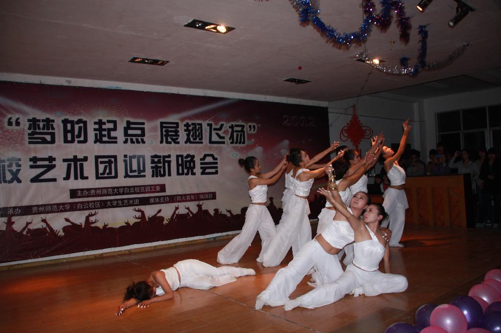 10月26日晚,由校团委主办,白云校区大学生艺术团承办的2012“梦的起点·展翅飞扬”迎新晚会在学生活动中心成功举办。白云校区团工委邓江老师,经济与管理学院团委书记张晶晶老师,我校研究生支教团舒梦月,宝山校区艺术团团长郑姚、副团长伍豪以及白云校区各大校级学生组织的主要干部参加了晚会。