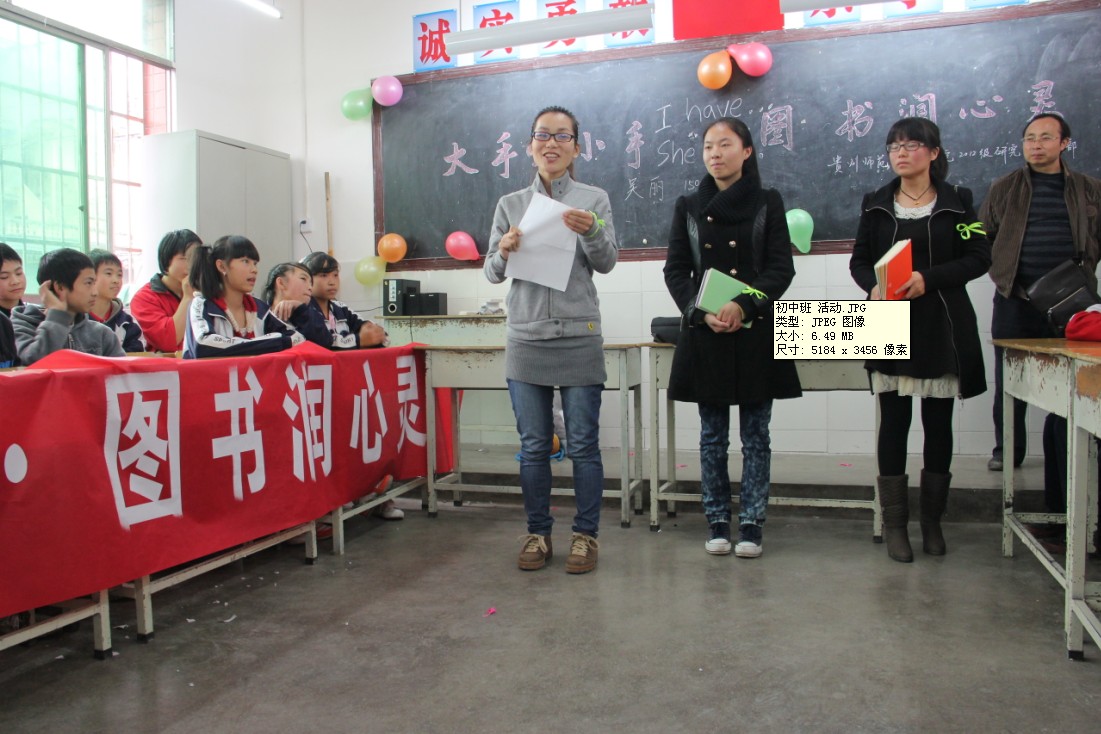 据悉,贵阳市旭东学校有650名学生,全部为进城务工人员子女,是典型的农民工子女学校。文学院12级研究生党支部开展的青春·梦想读书会公益活动,正是以“大手牵小手·图书润心灵”为宗旨,意在通过汇集社会各界的力量,向贵阳市农民工子女学校学生建立“梦想小书架”,从而改善城市进城务工人员子女阅读资源紧缺、课外读书困难的现状,帮助他们全面发展,更好更快地成长成才,也不断提高研究生党员践行宗旨、服务社会的能力。此类活动今后还将长期开展下去。