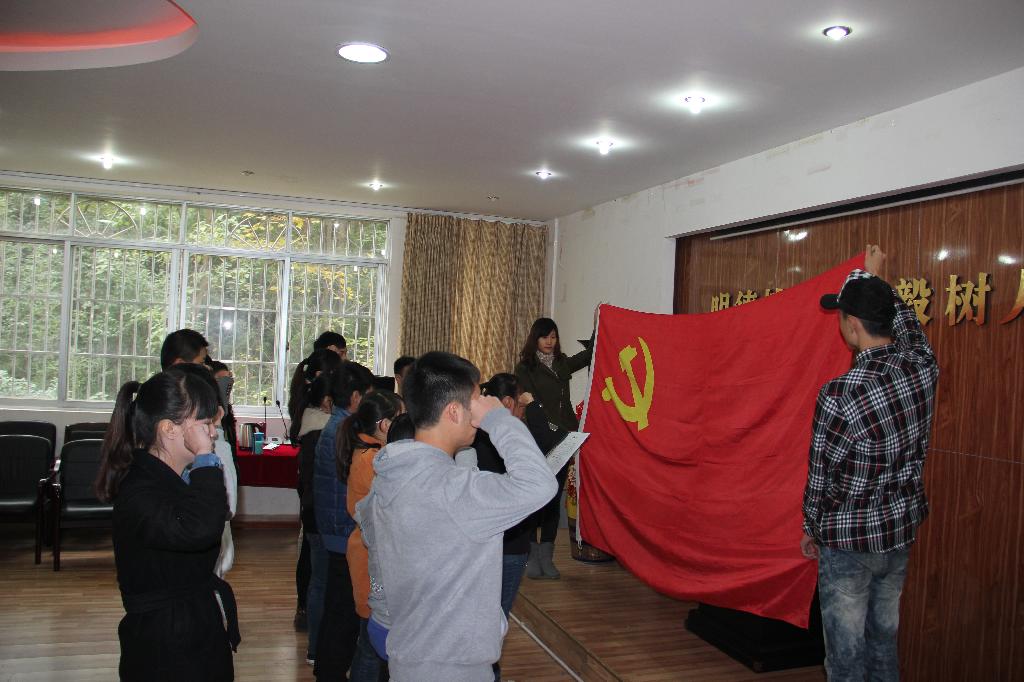 随后,服务团15名同学面对党旗郑重宣誓并签订了承诺书。