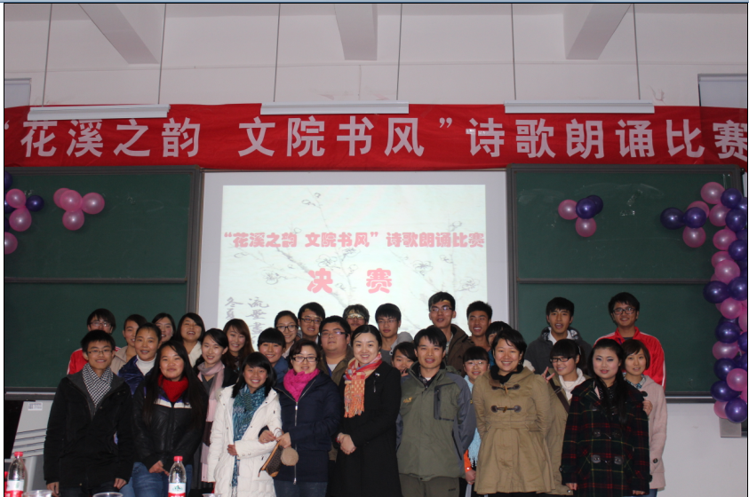 活动在吴佳桐同学婉转优雅的古筝弹奏中拉开帷幕。李大卫、方玲、唐杰、李珍珍等十二组参赛选手依次上场,进行朗诵。激烈的角逐尽显语言之美,诗歌之魅。最终,李大卫同学以他铿锵有力的激情朗诵脱颖而出,斩获首奖。