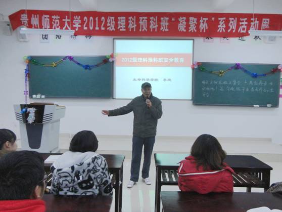 12月11日晚,2012级理科预科生安全教育会议在花溪校区GJ3511教室召开,全体理科预科同学参加安全教育会议。
