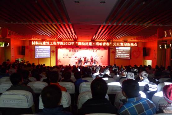 12月26日晚,材料与建筑工程学院在白云校区求是礼堂举行了以“舞动材建、唱响青春”为主题的元旦暨迎新晚会,旨在迎新年庆元旦,活跃学习氛围,丰富校园文化,发掘培养同学们的表现创造能力,深入推进文艺素质教育。材建学院党委副书记郑环、副处级组织员粟灿辉、工会主席何建之、土木学科组副主任王红瑛以及校团委邓江,数计学院崔世杰、外国语学院冷涛、文学院杨昌兴以及学院杜吉娴,杨波等辅导员出席。学生会全体工作人员、各级各班同学、此次晚会的表演人员共计500余人参加了此次的晚会。晚会由夏雪梅、葛欢、金露、戴立鑫4位同学主持。