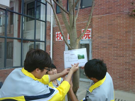 随后,各班同学到分管区域内给树木挂牌。同学们热情高涨、分工明确,给树木挂上了正确的“名片”,同时将花园中的杂物进行了清理,将环保从身边做起。