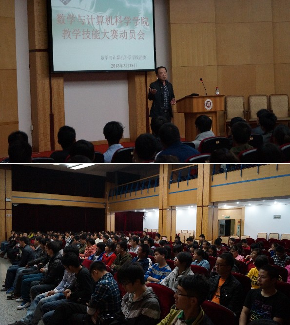 3月19日,数学与计算机科学学院第四届教学技能大赛动员会在田家炳三楼多功能厅召开。出席会议的有院党委副书记孙谦,副院长夏小刚,党委组织员杜梅英,院团委副书记邓莉莎,辅导员熊胜兰及2010级全体学生。会议由邓莉莎主持。
