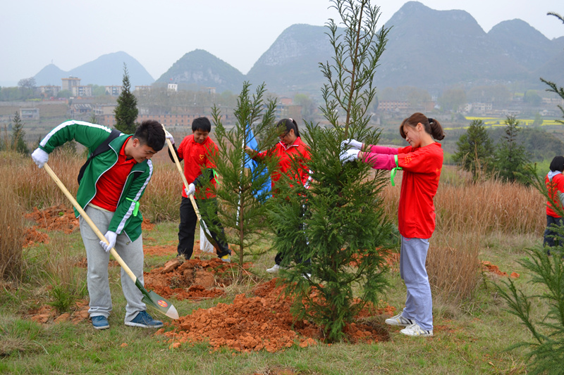 为积极响应共青团贵州省委“发扬雷锋精神,共建绿色家园”的号召。近日,在共青团贵州省委书记马宁宇,副书记涂妍、刘锐,团省委志愿者行动中心主任宋静及相关单位负责人的带领下,求是学院组织26名绿丝带志愿者参加了在安顺市平坝县夏云镇的植树活动。