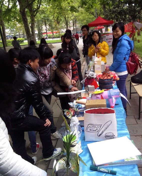 4月10日,历史与政治学院团委学生会在白云校区林荫大道开展“厉行勤俭节约、从我做起-废品利用展览”活动。在活动现场,学生会的同学们用废品制作的工艺品、玩具向过往行人进行展示。在每件展览品的旁边均标明了作者、主题以及作品编号,据介绍,这是为了观众们能现场向自己喜爱的作品进行现场投票,以便对得票多的同学给予奖励。据悉,本次活动是为了积极响应并贯彻当前党中央提出的“厉行勤俭节约”的作风,同时也为了认真做好学院“一院一特色,一周一主题”的学院特色工作。
