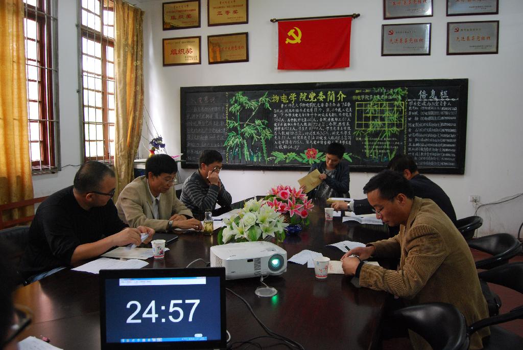 24月16日物理与电子科学学院组织了2013年研究生复试工作。复试分为两个环节,上午在物理楼735教室进行专业笔试考核,下午在会议室进行综合素质面试考核。