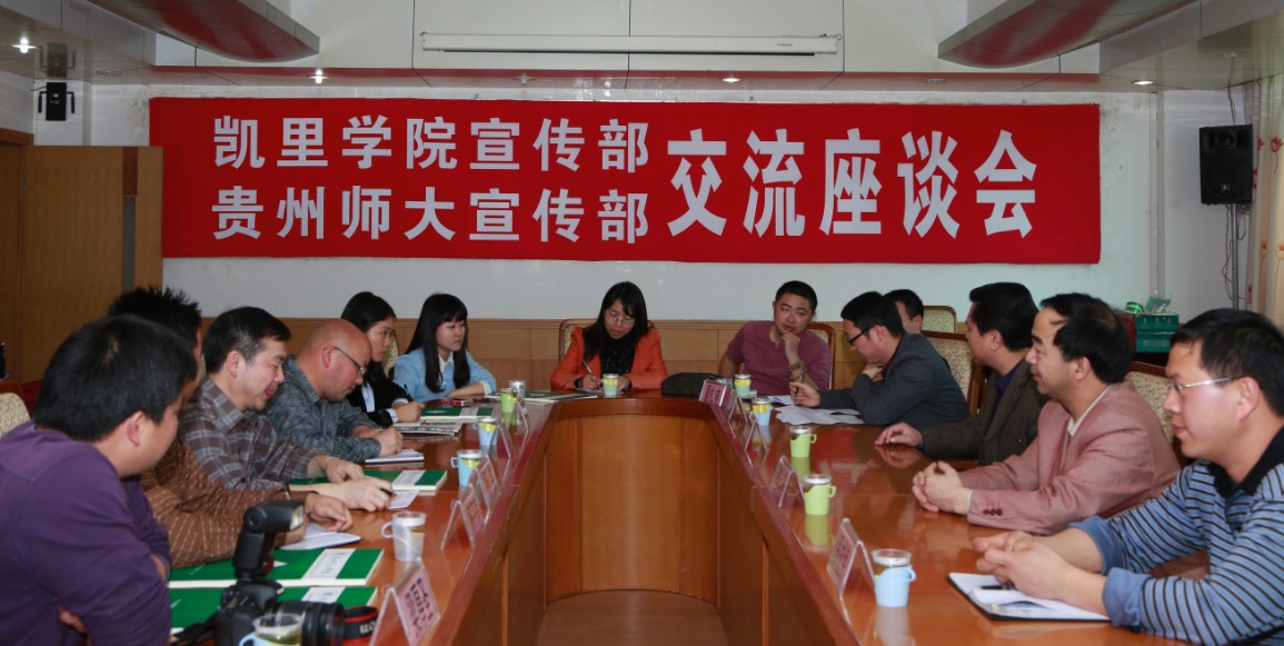 校党委副书记邹克扬、宣传部部长黄保红热情接待凯里学院宣传部的老师们,并对他们的到来表示热烈欢迎。邹克扬表示我校与凯里学院站在同一起跑线,凯里学院在宣传方面做得很好,希望两校能友好地多多交流,促进两校共同发展。