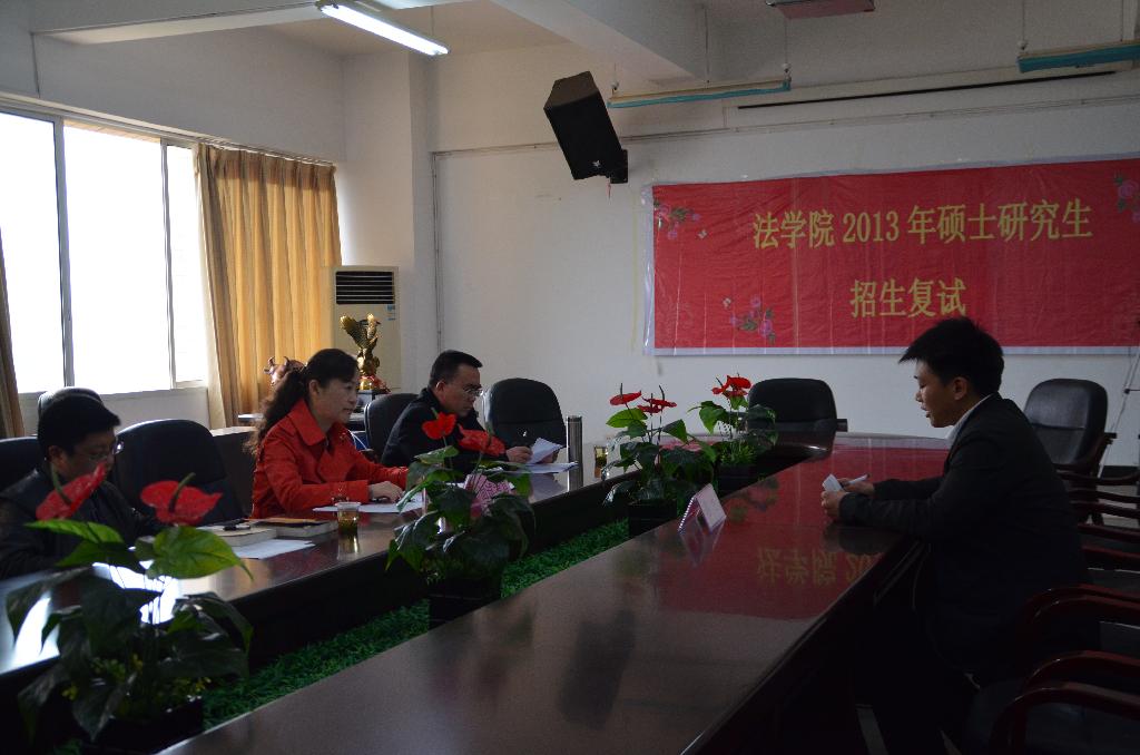 2013年4月16日,按照学校2013年招收攻读硕士学位研究生复试工作的总体安排,法学院认真组织开展了硕士研究生复试工作。