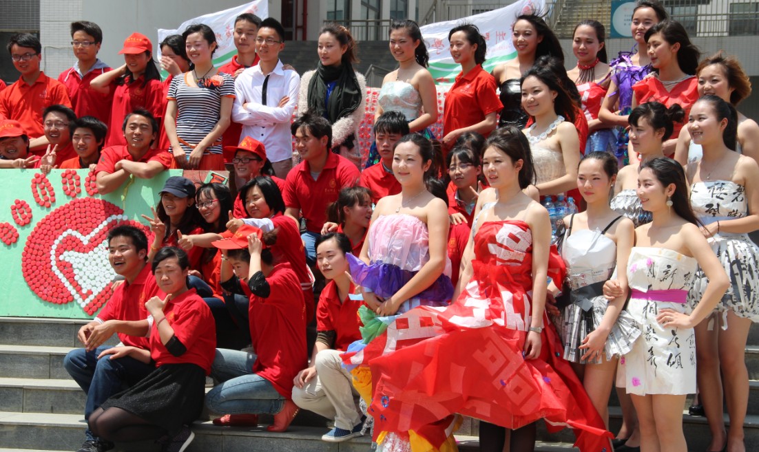 开幕式上,宝山校区志愿者围绕开展“v521”宣传和各学院特色志愿服务宣传。所谓“v521 ”, V即是“volunteer,志愿 ”起来,在吃、穿、用、行、学“5 ”个方面,用21天养成良好的习惯。还在等什么,快快参与我们的V521活动吧!梦想有你,更精彩。花溪校区志愿者们开展了“变废为宝”时装秀和文艺表演。上百个废弃塑料瓶通过精心制作,成为了开幕式背景的幕布。此外,模特们穿着用各种废弃物制作而成的服装自信大方地展示在舞台上,倡导大家厉行节俭,从我做起。