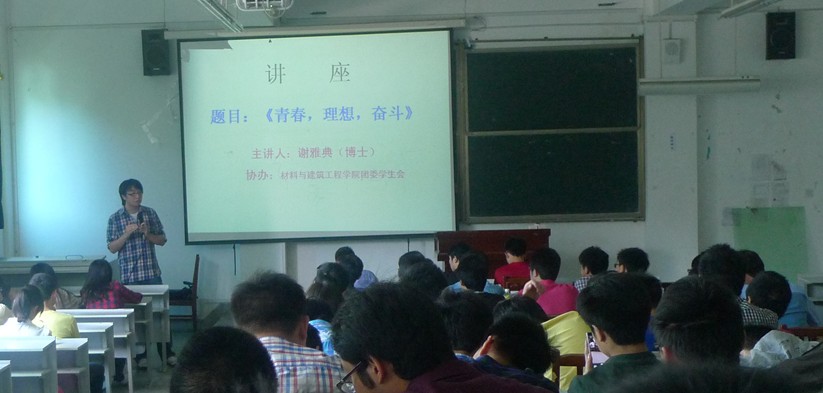 为了丰富第八届校园文化活动月活动氛围,围绕“中国梦,师大梦,我的梦”的活动主题,4月19日13:30,材料与建筑工程学院邀请由国家纳米科学中心,魁北克大学铝纳米材料专业联合培养的谢雅典博士在综合楼308阶梯教室举办了以“青春、理想、奋斗”为主题的青春励志讲座。讲座由材料学科主任刘静博士主持,学院160余学生听取了此次的讲座。