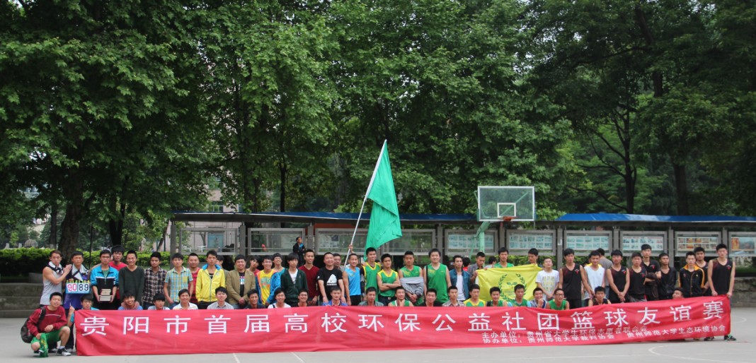 5月4日,由贵州省大学生环保志愿者联合会主办,贵州师范大学生态环境协会、裁判协会共同承办的“贵阳市首届高校环保公益篮球友谊赛”在白云校区举行。参加此次活动的高校有贵阳中医学院、贵阳学院、贵州警官学院、贵州工业职业技术学院、贵阳交通职业技术学院的生态环境协会。