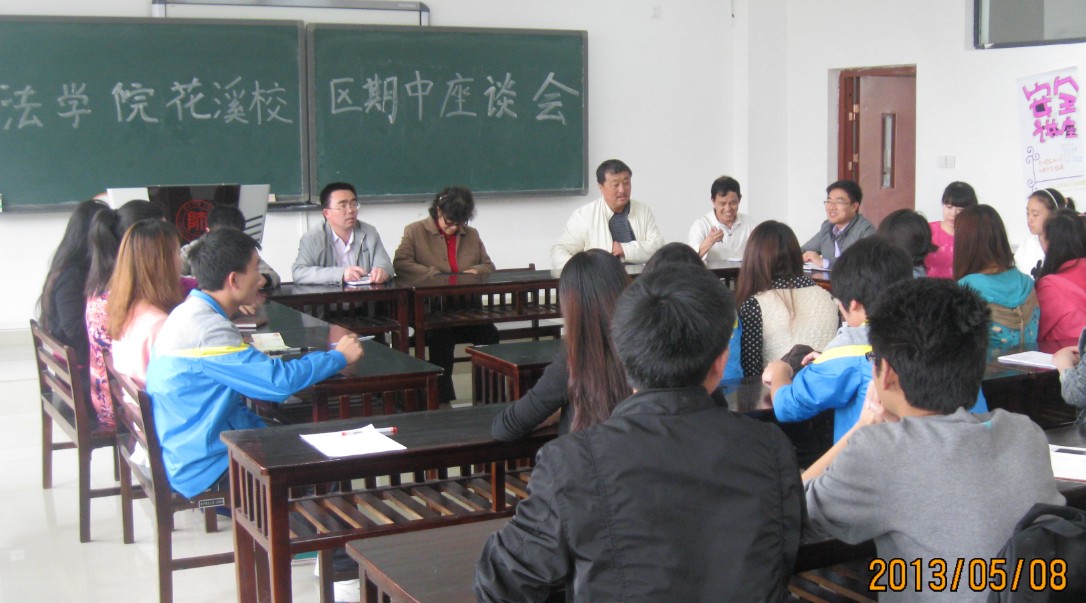 5月8日,法学院在花溪校区 GJ1302教室召开2012~2013学年第二学期期中座谈会。本科教学督导组专家胡泽尧、李小白、闫慧芝,法学院党委书记蒙黎明、副书记林也婷,副院长李运才、文永辉,教学秘书,辅导员及学生代表参加会议。