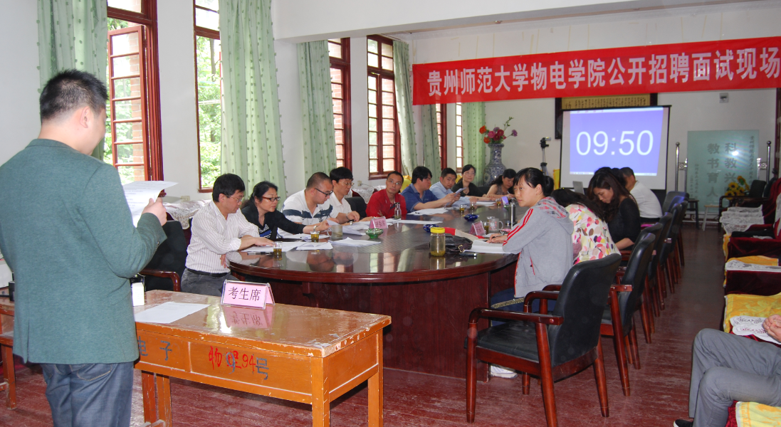 接着,5月15日,学院在物理楼会议室进行了2013年新进人员的面试工作。本次面试专家组成员分别由院党政领导、各学科主任、实验室主任以及教师代表组成。新进人员面试工作,分为两个环节,第一面谈交流;第二,试讲及实验仪器操作。在面试中,面试专家主要从应聘者所学专业、实践经验、科研情况、教学能力等方面进行考察,严格选拔岗位所需人员,为学院未来发展增添新生力量。