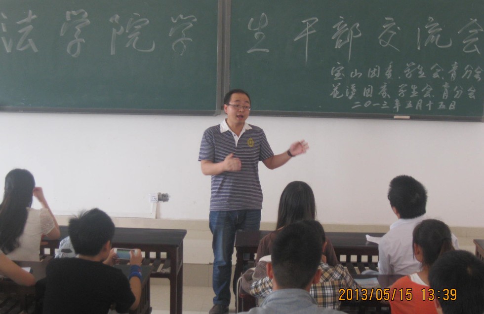 5月15日,为加强法学院宝山、花溪两校区团委、学生会、青分会之间的交流与合作,进一步促进各项活动的顺利开展,法学院在花溪校区GJ3211教室召开2012—2013学年学生干部交流会。院团委书记欧秀松,2012级学生辅导员张盈盈以及学生干部代表参加会议。