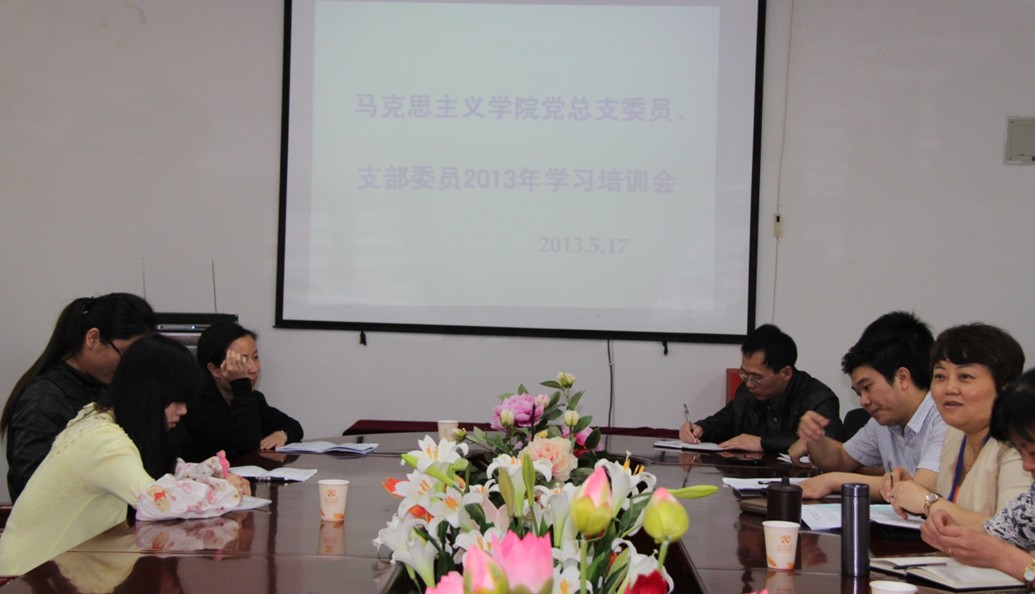 5月17日下午,学院党总支在会议室召开了总支委员、支部委员2013年学习培训会暨理论学习中心组集中学习会。党总支书记杨文武主持学习和培训。