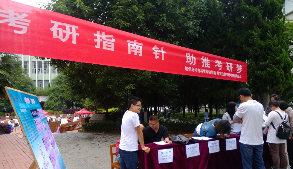 为深入开展“转变作风提效能 创先争优促发展”活动,推进服务型学生党支部创建,地环学院党委各研究生党支部联合开展考研咨询活动,为准备考研的同学提供服务和帮助。