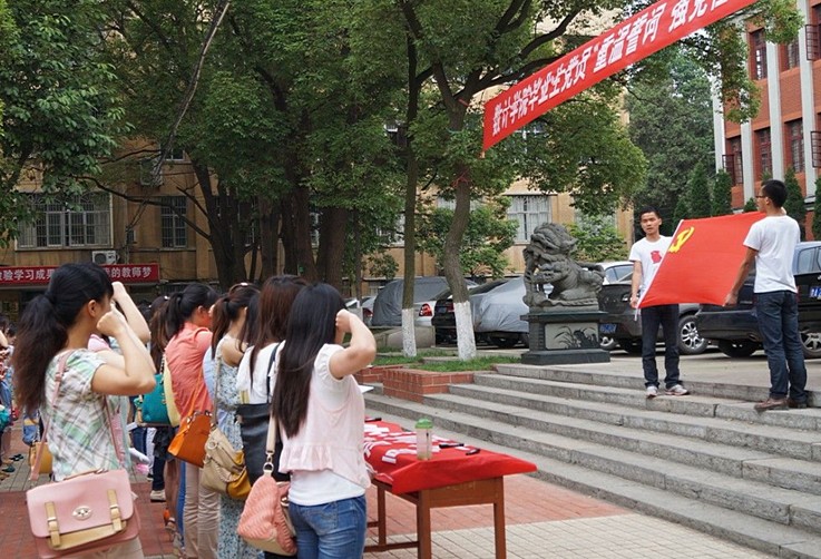 会后,同学在孙谦、杜梅英的带领下,来到庄严的毛主席像下,面对党旗举起右手,重温了入党誓词。于海伦同学代表毕业生党员宣读《数学与计算机科学学院2013届毕业生党员承诺书》。全体毕业生党员进行了签名活动。