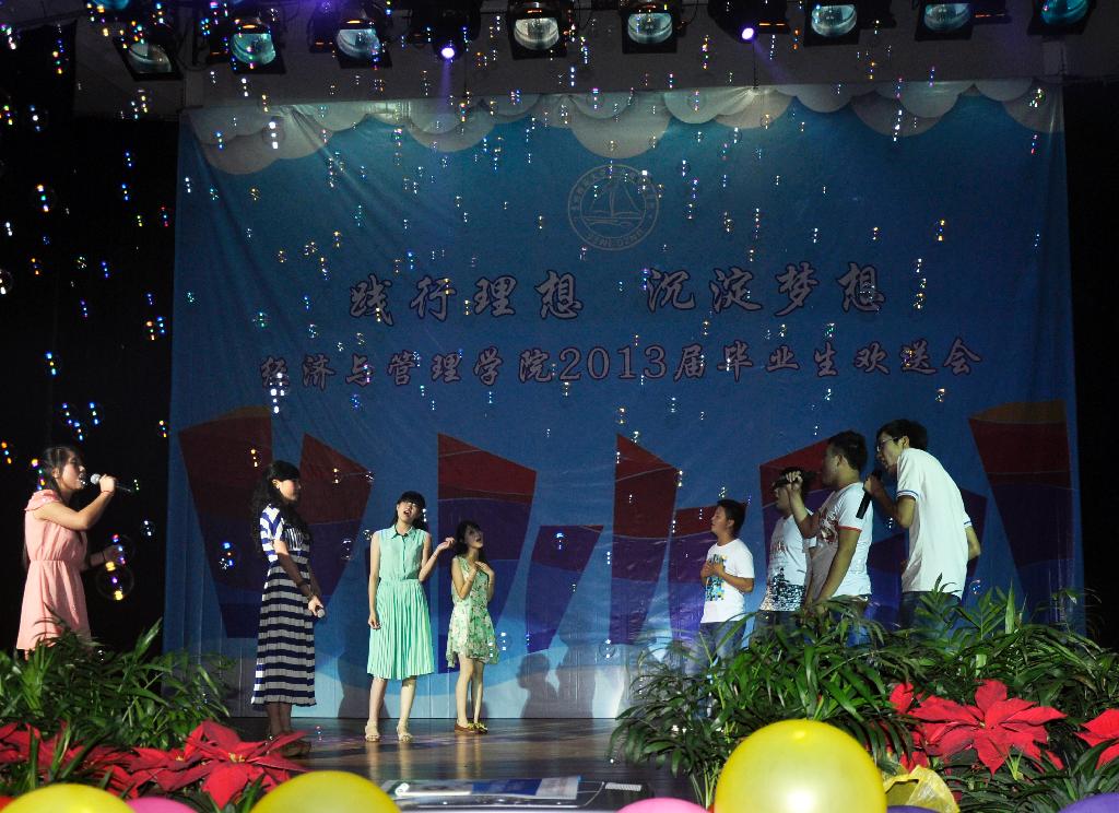 6月1日下午,经济与管理学院2013届毕业生欢送会在学校大礼堂举行。经济与管理学院院长吕萍,党委书记巴建伟、副书记项君,副院长王立伟及学院师生800余人欢聚一堂,观看欢送会文艺表演。
