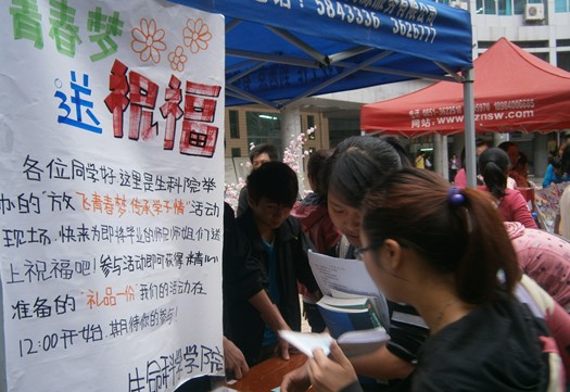 5月31日中午,生命科学学院在文科楼前举办了“放飞青春梦·传承学子情”给毕业生祝福活动。本次活动由我院团委、学生会联合举办,主要为我院以及全校即将毕业的学子们送上老师和同学们最真挚的祝福。