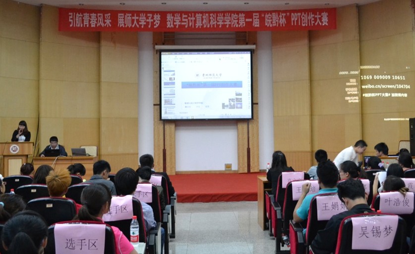 6月2日,数学与计算机科学学院在宝山校区田家炳三楼多功能厅举办了以“引航青春风采,展师大学子梦”为主题的首届“皖黔杯”PPT创作大赛。本次大赛由数学与计算机科学学院团委主办,皖黔文具协办,邀请计算机学科王祥斌副教授、张艳副教授、付苏嘉副教授担任评委。院党委副书记孙谦、团委负责人邓莉莎,教育科学学院罗月念等老师以及皖黔文具负责人白海荣先生出席。