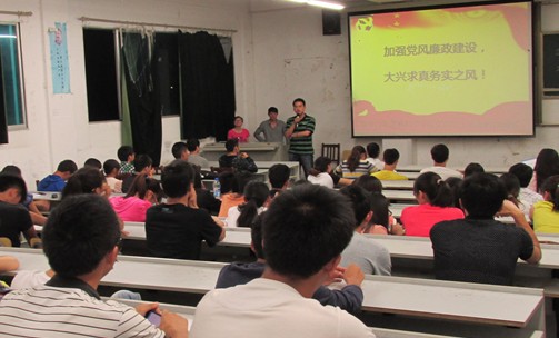 党组织生活会以党风廉政建设为主线,通过党员、预备党员、积极分子代表演讲、歌曲欣赏、滑稽幽默的小品、相声、诗歌朗诵等形式,向同学们宣传了党风廉政建设在我党发展历史过程中的重要作用,启发学生树立严于律己,遵纪守法的自觉性。