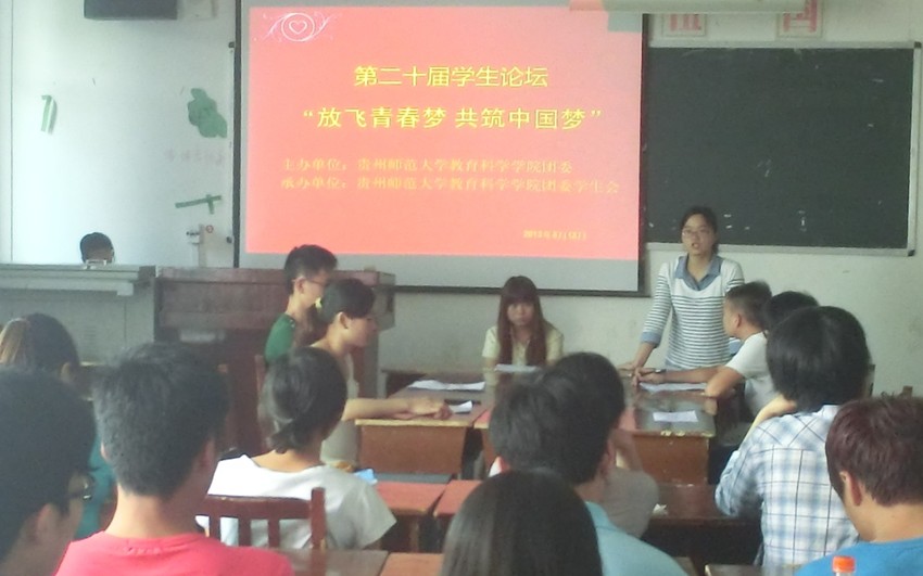 最后,郭腾飞老师对本期论坛做了总结发言并阐述了实现以上四个“梦”之间的内在联系,她说“我的梦”是最小的单元是基础,只有把“我的梦”融入“中国梦”,以“青春梦”托起“中国梦”,脚踏实地,埋头苦干,才能将一个个“小梦”汇成“大梦”,从而实现“师大梦”、“贵州梦”。她希望同学们坚定理想信念,励志刻苦学习,积极投身实践,努力去实现自己的梦,为实现中国的伟大复兴而奋斗。