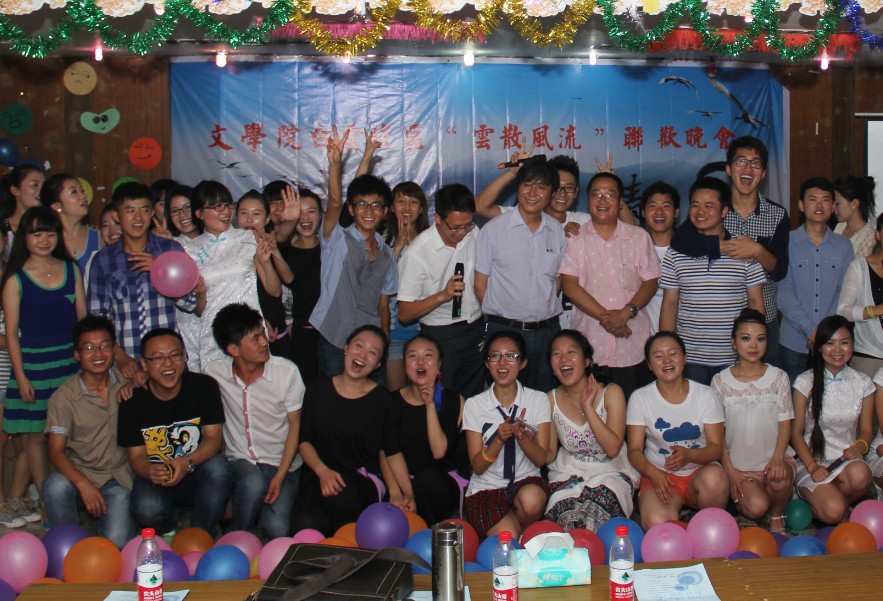6月20日晚,由文学院(白云校区)党支部、白云校区团委学生会举办的“云散风流”联欢晚会在白云校区综合楼211教室举行。文学院院长易闻晓,党委副书记陈明及学院师生280余人欢聚一堂,观看联欢晚会文艺表演。