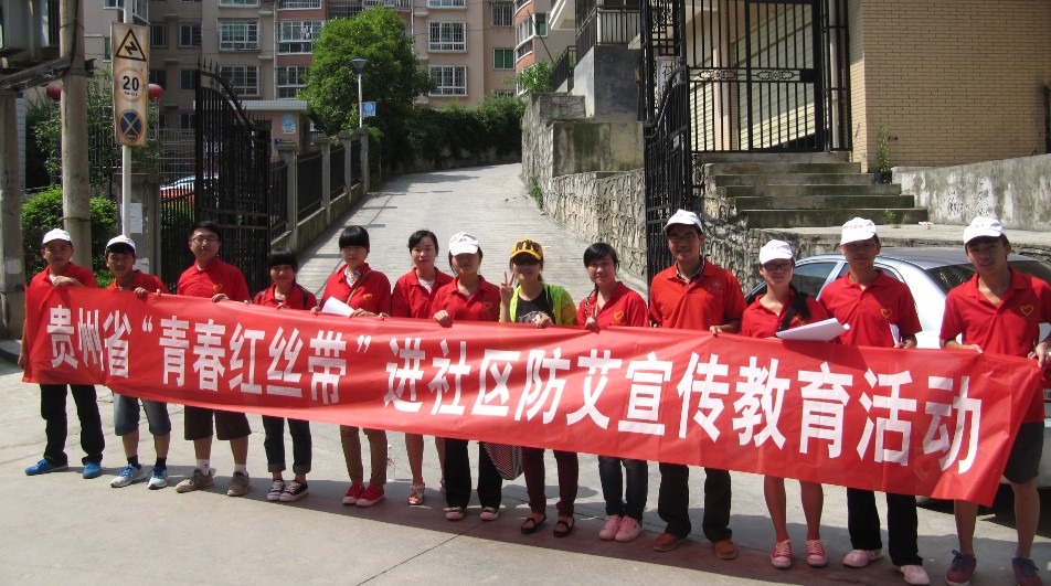 6月28日,在校团委赵捷的带领下,我校大学生志愿者走进花溪区溪北社区开展防艾知识宣传活动。