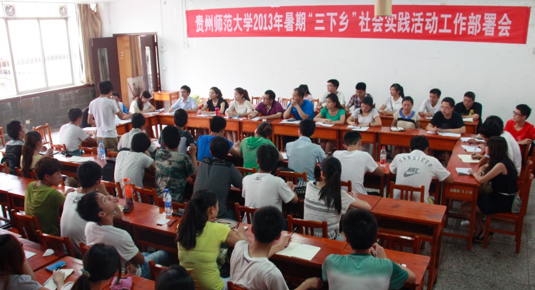 7月5日,来自全校各学院的37名同学组成的贵州师范大学暑期社会实践活动直属队及全校院级实践支队在我校青春驿站召开工作筹备暨队员培训会。校团委副书记陈贵平、姚作舟,校团委组织部部长李正军及团委其他老师出席了培训会。会议由李正军老师主持。