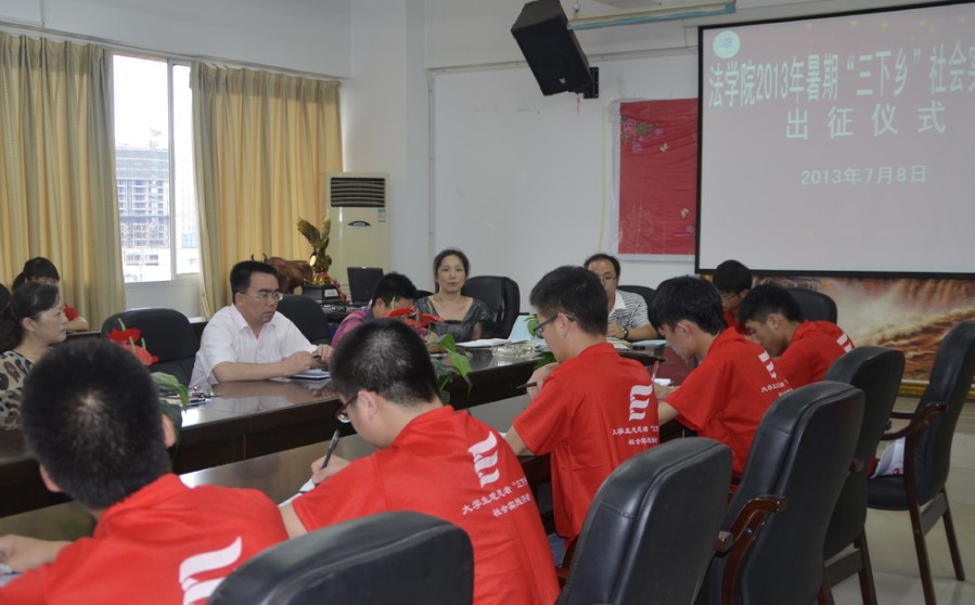 7月8日上午,法学院在宝山校区会议室开展暑期“三下乡”社会实践活动出征仪式。院党委书记蒙黎明、院长潘弘、党委副书记林也婷、副院长李运才、副院长文永辉、团委书记欧秀松和带队老师何成忠老师及“三下乡”青年志愿者突击队30名同学参加会议,会议由团委书记欧秀松老师主持。