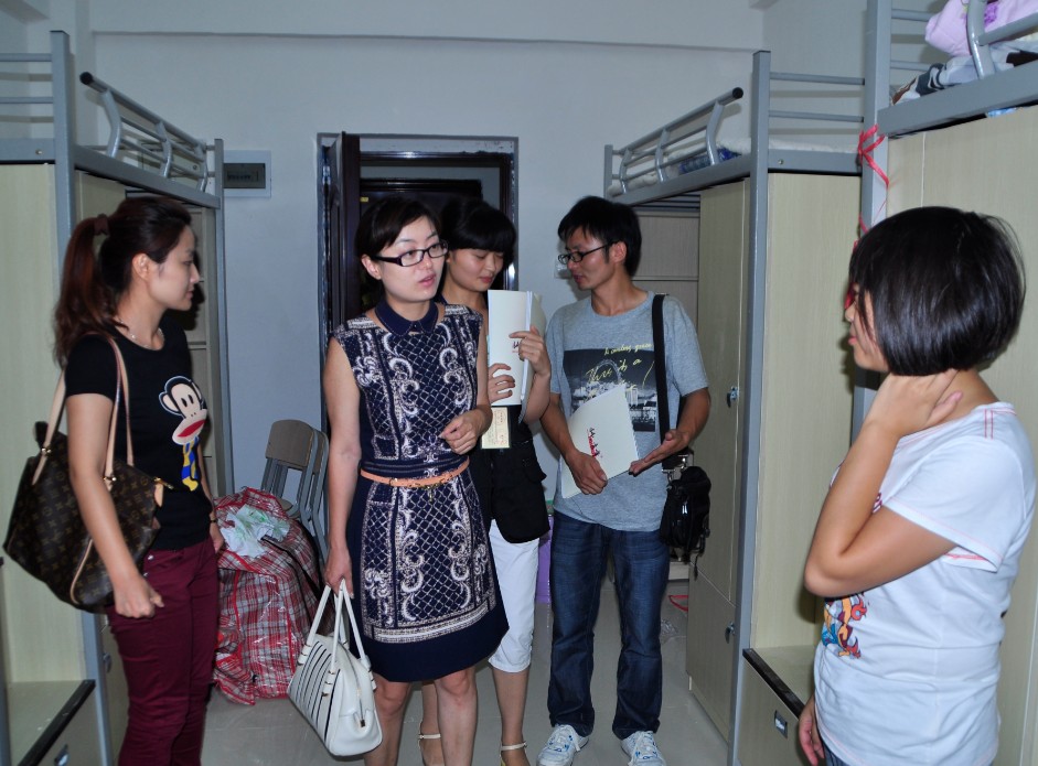 校团委老师首先来到了慎思苑,看望了今日从白云校区搬来入住花溪校区的2011级同学。团委老师询问了大家对花溪校区的环境感受,耐心地解答学生的疑难问题,就花溪校区校园生活、学习环境等问题进行了介绍,并殷切的希望大家能尽快熟悉校园环境,融入新校区的学习生活中。各校级学生组织同学与老师一道深入各寝室,向刚从白云校区搬来的新同学发放了《师大青年》宣传册,并向大家介绍了宣传册的内容。宣传册内容丰富,具有花溪校区特色,册子里面涵盖了丰富多彩的花溪校区校园文化活动、校园生活、学习温馨提示、出行交通信息等方面内容。宣传册的发送对于大家而言,是一本生活学习的口袋书,通过册子内容的阅读,大家将会进一步了解花溪校区的情况,熟悉新校区的校园文化环境。“很期待在花溪校区生活学习,今天终于入住这里,很激动。有了这本册子,很多问题我想不用问老师和其他同学,答案就在里面,真是太感谢师弟师妹了,加油花溪!”国旅学院的赵洁同学如是说道。