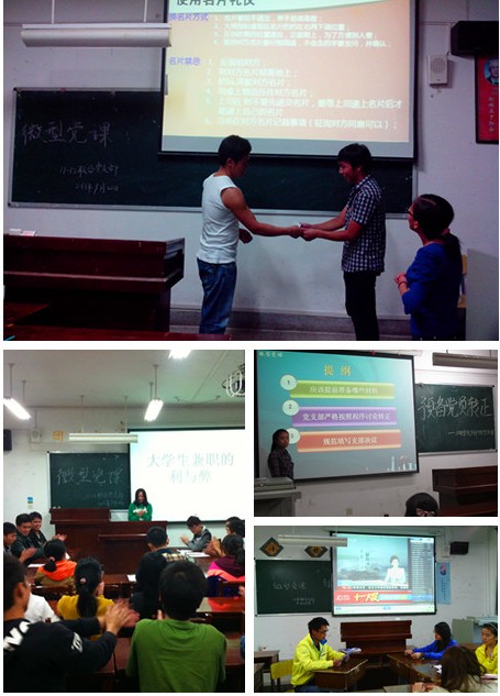——创新形式,推进党课教育的四个转变。微型党课的特点就是“以小见大、见微知著”。活动开展四个月以来,我们有效解决了师资力量不足、党课教育效果不明显等问题,实现了四个转变。一是在教育主体上,变“一人讲”为“大家讲”,把话筒交给普通党员,鼓励每个党员大胆走上讲台,人人争当教员,人人都是学员。学生党员主动性得以调动起来,正如学生党员江峰所说:“为了给同学们带来一节好的微型党课,我都是主动去了解去编排自己的课程,同时这种让我与同学们零距离的感觉很好,以自己的亲身经历引起听课者的共鸣,让我们的交流更加轻松。”二是在教育时间上,变“长篇大论”为“短小精悍”。传统党课教育,领导、专家一讲往往就是一两个小时,而微型党课每人讲的时间一般为10至20分钟,时间短,内容集中,以小见大,由此及彼,入情入理,可亲可信。三是在教育内容上,变“单一型”为“多样化”。本次微型党课内容十分丰富,有“中国梦”、“群众路线”等主要理论知识介绍,有“孝文化”、“长征精神”等人文精神内容,有“支部凝聚力”、“党内民主”等党务工作介绍,还有“飞腿哥”、“最美司机”等身边网络热点事件等。四是在教育方式上,变“灌输式”为“互动式”。每个授课者在精心准备的基础上,各抒己见、相互补充,最后总结点评、归纳提炼,达到说透道理、阐明主题的目的。