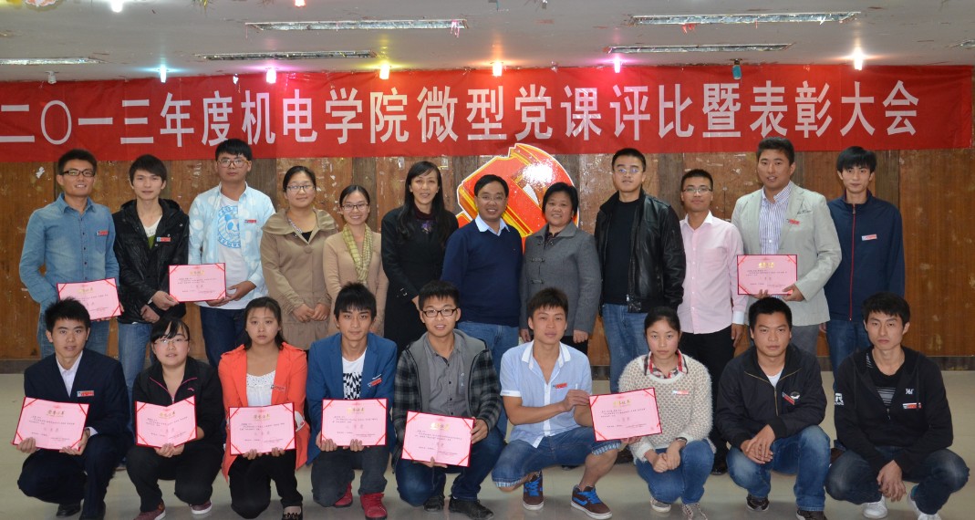 ——现场评比,效果好不好,听众说了算。为进一步丰富党员学习教育活动方式,营造良好的学习氛围,巩固微型党课教育活动取得的成果。10月25日下午,我院在白云校区综合楼211报告厅隆重举行微型党课现场评比暨表彰大会。学院党委副书记黄平惠、党委秘书张文云,党支部书记李芳、贺曲、邢丹花、李梅、朱成龙及全体学生党员、学生干部等180余人参加大会。组织部罗税、杨淑珍老师莅临会场指导工作。在全院47个备选微型党课中由各支部推荐报送的九个项目参加最后的决赛。在历时三小时的评比中,现场时而发出欢快地笑声,时而报以热烈的掌声,比赛结束后,台下观众仍然感觉意犹未尽。最终2010级机制党支部选送的《新闻直播间》,凭借新颖的教学模式、幽默的语言、活泼的讲课方式以88.92的高分摘得了比赛桂冠;《大学生党员素质的提高与作用》和《学习雷锋好榜样》荣获二等奖;《孝道——中国人的血脉》、《中国梦、我的梦》及的《如果凝结就是爱,片刻便可成永恒》获得三等奖;《一个党员一面旗帜》、《见义不为,无用也》、《精神与行动同行》分别获得了本次比赛的优秀奖。
