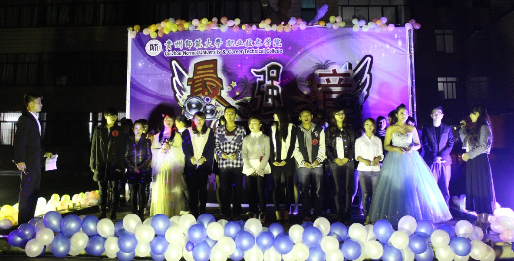 10月30日19时30分,由职业技术学院团委主办、学生会承办的2013年校园“十佳歌手”总决赛在二教楼前隆重举行,本次大赛历经半个月,经过初赛、复赛的层层选拔,最终20位选手脱颖而出杀入总决赛。贵州师范大学团委李龙老师、贵州师范大学学工部杨光复老师、职业技术学院吴旭梦、王莉霞、柳青、郭晓卉老师出席并担任大赛评委,学院党总支副书记印明富、副院长颜广、培训部董玟颖、校团委邓江以及校级和各兄弟学院学生组织负责人出席大赛现场。2012学前专业尚碧英和2012电子商务专业闫丹同学担任大赛主持。