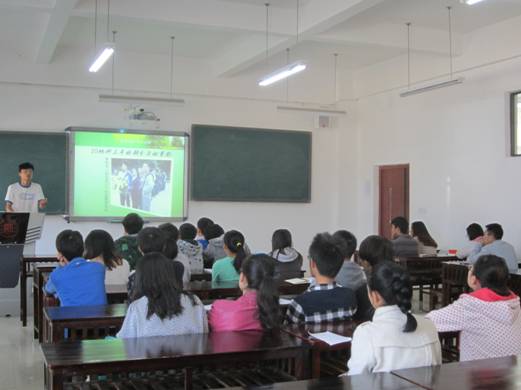 10月25日,学院2010级省级优秀班级干部与低年级学生干部交流会在花溪校区GJ5204举行。2010级省级优秀班干部代表张佳富以“凝聚力量,创先争优”为主题,分别从班委会管理体系的建设、班委自身工作能力的培养、班级凝聚力的打造、班级特色活动的开展等方面与低年级学生干部进行了交流。