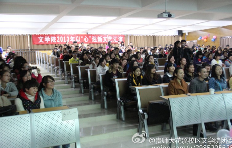 为迎接2013级新生的到来,展现我院学子风采,11月15日,由我院团委主办,学生会承办的“以‘心’迎新,迎新晚会”在我校花溪校区公共教学楼6201举行。院党委副书记陈明,辅导员杨定、雷力以及问学院学生300余人参加此次晚会。
