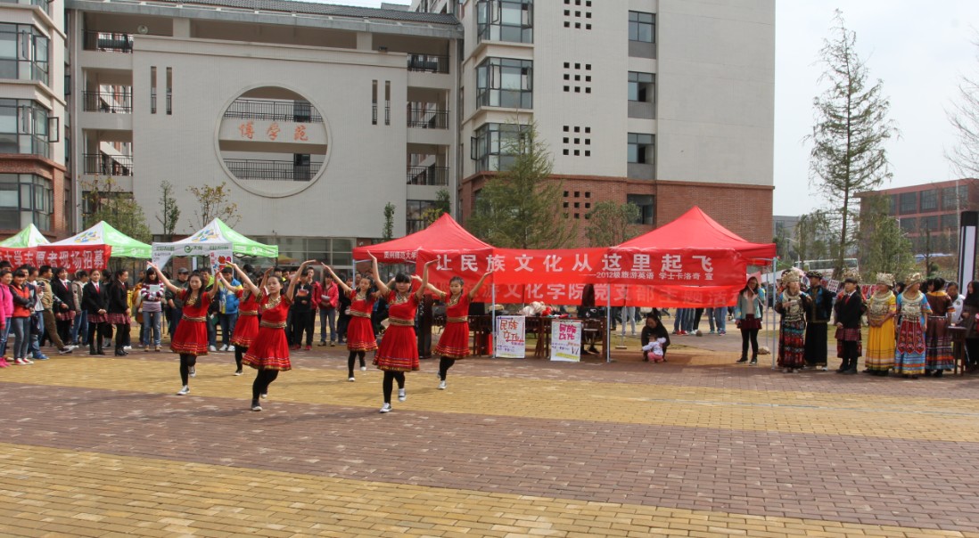 11月19日中午至下午,国际旅游文化学院在花溪校区第一食堂门口组织开展了 “让民族文化在这里起飞”主题活动,活动以贵州民族歌舞表演、民族服饰展示、特色图片展览等组成,活动由2012级旅游英语专业学生具体承办。教师党员陈永红、高雅杰、董宝玲、姜涛、何胜仁以及花溪校区全部学生党员、入党积极分子参加了该项活动。