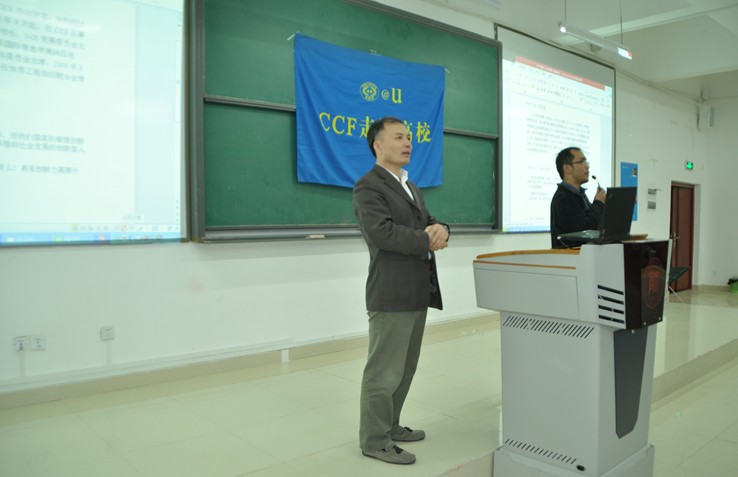 本次讲座得到了同学们的大力响应,讲座开始时教室里座无虚席。杜子德研究员首先在大会上做了发言,他讲座的主题是“创新的本质”。杜子德秘书长提到CCF的组成、由来、CCF与别的学会的不同以及CCF在各个领域中的重要性,将中国计算机学会的发展历史以及“CCF走进高校”系列活动开展的缘由与在场的师生进行了交流,使大家对CCF有了更加深入的认识。最后重点提出“创新”的定义是解决现实问题,并深谈了创新的作用。
